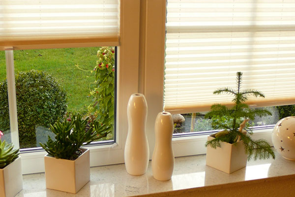 Bei Plissees mit einem geringeren Wärmeschutz wird das Licht gestreut und trifft nicht direkt auf die Gegenstände im Raum auf. Für eine Fensterfläche,